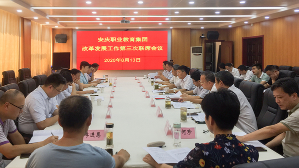 8月13日下午,安慶職業(yè)教育集團(tuán)在安慶職業(yè)技術(shù)學(xué)院召開改革發(fā)展工作第三次聯(lián)席會(huì)議。集團(tuán)理事長、安慶職業(yè)技術(shù)學(xué)院黨委書記王進(jìn)主持會(huì)議。集團(tuán)副理事長、安慶職院院長畢明生,市人社局局長聶立新、經(jīng)信局局長楊旭東、教體工委副書記陳亞玲、市委督查考核辦副主任朱代全,市經(jīng)開區(qū)管委會(huì)副主任汪建寧、人社局局長孫琳,高新區(qū)管委會(huì)主任唐厚明、筑夢新區(qū)管委會(huì)副主任何淵,安慶職院副院長譚維奇、李克讓,安慶電大校長吳雪恩,安慶工業(yè)學(xué)校校長孫慷,安徽化工學(xué)校校長徐志,安徽理工學(xué)校校長呂維山,安慶技師學(xué)院副校長徐波等出席會(huì)議,職教集團(tuán)秘書處和安慶職院相關(guān)同志參加會(huì)議。