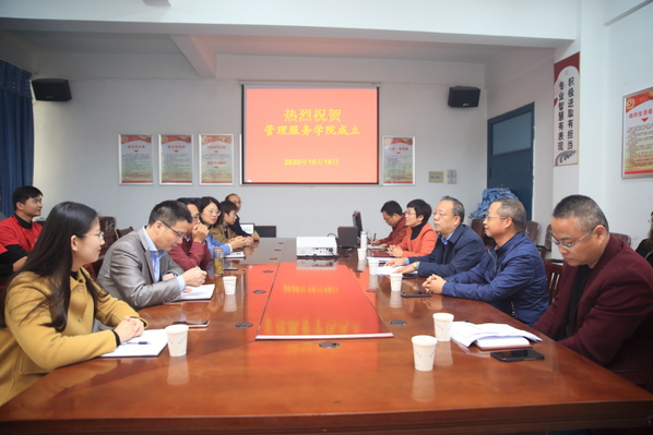 譚維奇出席管理服務(wù)學(xué)院成立大會(huì),為學(xué)院揭牌。