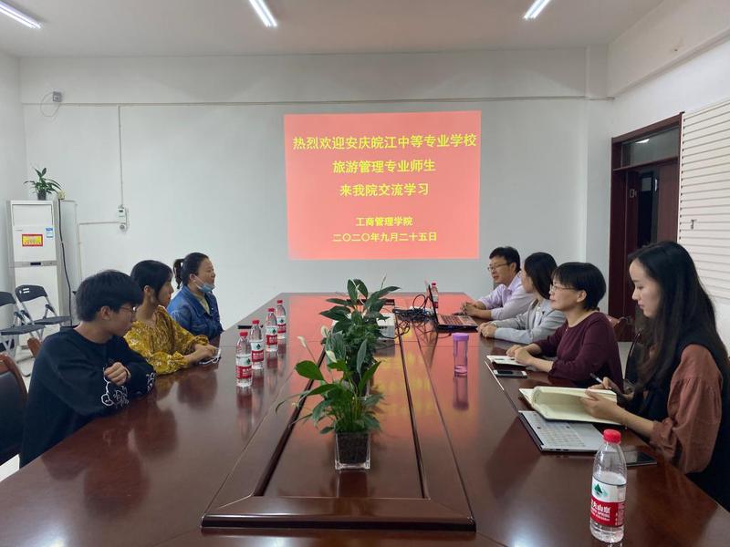 何赟代表工商管理學(xué)院熱烈歡迎安慶皖江中等專業(yè)學(xué)校師生3人的到來,并介紹了安徽機電職業(yè)技術(shù)學(xué)院旅游管理專業(yè)歷年在技能大賽方面取得的佳績。