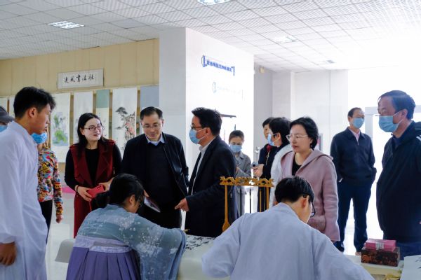 調(diào)研組一行實地走訪查看了安慶職業(yè)技術(shù)學院的數(shù)碼鋼琴、音樂、舞蹈、繪畫等實訓室,欣賞了油畫、漆畫、版畫、剪紙、攝影、插花等作品及建筑模型展示;觀看了安慶職院學生歷年在全國大藝展等獲獎作品紀實視頻;觀摩了茶藝、書法等現(xiàn)場表演等。專家們對安慶職院的美育工作取得的成績表示肯定,對學校美育工作今后的發(fā)展提出了期望。