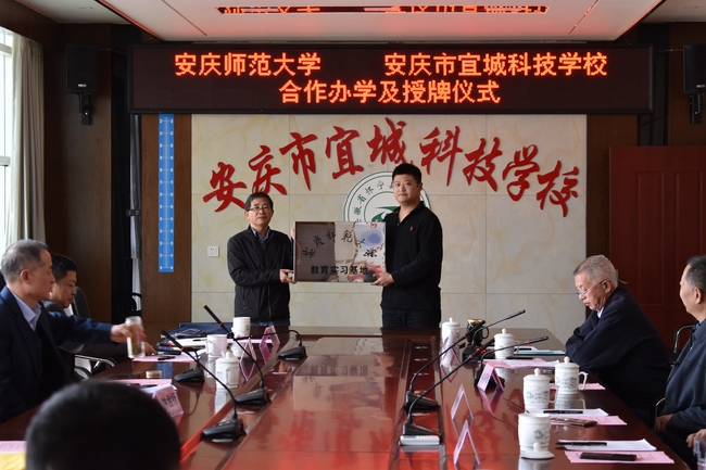 授牌儀式上,余振華對安慶師范大學長期以來對安慶市宜城科技學校的支持表示衷心感謝,并介紹了學校的建校歷史、辦學理念及辦學成果,表示不遺余力地為安慶師范大學實習生提供實習、就業(yè)的良好環(huán)境、為貴校輸送優(yōu)質(zhì)的畢業(yè)生生源,希望兩校之間加強交流與合作,共享教育資源長久合作、規(guī)范合作,為安慶的經(jīng)濟和社會發(fā)展作出積極貢獻。
