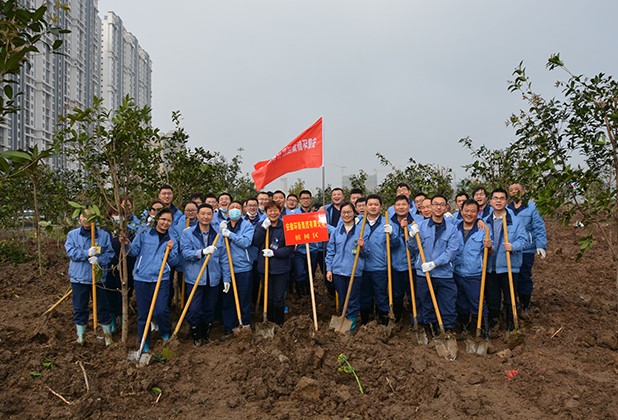 上午,環(huán)新集團(tuán)三十多名職工乘坐大巴車早早的趕到,大家拿起鐵鍬,三人一隊、兩個人一組,有序的將一棵棵樹苗栽下。遠(yuǎn)處,別的組隊也在熱情勞動中,整個現(xiàn)場一派火熱景象。經(jīng)過一個上午的努力,原本光禿禿的月形社區(qū)閑地一片生機(jī)勃勃。