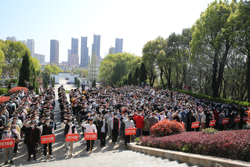 清明節(jié)至,日麗風(fēng)清,松柏凝翠,春潮涌動(dòng)。正值中國(guó)共產(chǎn)黨成立100周年之際,安徽天柱山旅游學(xué)校高一年級(jí)全體師生懷著無比崇敬的心情,高舉團(tuán)旗,徒步來到烈士陵園瞻仰革命烈士。