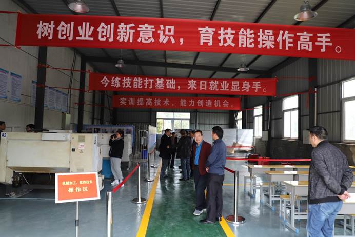 簽約儀式結(jié)束后,李克讓和姚彥和為安徽安慶技師學(xué)院東升校區(qū)揭牌,并實地參觀綜合實訓(xùn)室。