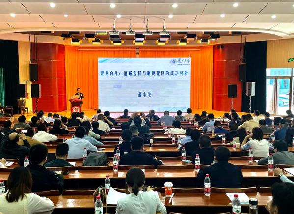 薛小榮以《建黨百年:道路選擇與制度建設(shè)的成功經(jīng)驗(yàn)》為題,結(jié)合大量歷史事件,用生動(dòng)通俗易懂的語(yǔ)言精辟透徹的講解了,新中國(guó)從“站起來(lái)”、“富起來(lái)”、“強(qiáng)起來(lái)”三個(gè)時(shí)代制度的選擇。生動(dòng)闡述中國(guó)共產(chǎn)黨從國(guó)情出發(fā),三次歷史性的制度調(diào)整與功能優(yōu)化,既簡(jiǎn)要概括了中國(guó)近代以來(lái)飛躍的歷史進(jìn)程,又深刻揭示了中國(guó)特色社會(huì)主義不斷開(kāi)辟發(fā)展新境界的歷史意義。報(bào)告深入淺出,內(nèi)容豐富,進(jìn)一步增強(qiáng)了參會(huì)人員對(duì)中國(guó)共產(chǎn)黨人初心和使命的情感認(rèn)同、理性認(rèn)同、實(shí)踐認(rèn)同,對(duì)黨的奮斗歷程和制度建設(shè)有了更加清晰的認(rèn)識(shí),在重溫黨的歷史過(guò)程中得到了新的教育和啟迪。(文:胡強(qiáng)圣 審稿:姚詠)