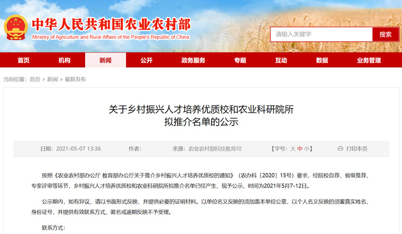 日前,農(nóng)業(yè)農(nóng)村部對鄉(xiāng)村振興人才培養(yǎng)優(yōu)質(zhì)校和農(nóng)業(yè)科研院所擬推介名單進行公示,安慶職業(yè)技術學院喜獲入圍。