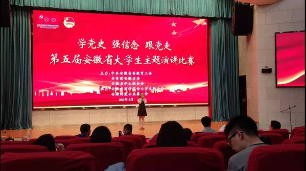 比賽現(xiàn)場,選手們圍繞學(xué)習(xí)“四史”、參加主題黨團(tuán)日活動(dòng)、疫情期間參加的社會(huì)實(shí)踐、家風(fēng)家教等主題,抒發(fā)了青年學(xué)子熱愛祖國、擁護(hù)中國共產(chǎn)黨、建設(shè)美好校園、提升綜合素質(zhì)的熱烈情感,表達(dá)了為新時(shí)代現(xiàn)代化美好安徽建設(shè)貢獻(xiàn)青春力量的決心和信心。孫澤芳同學(xué)以《用青春擁抱新時(shí)代》為題進(jìn)行展示,演講擲地有聲,表現(xiàn)清新自然,感情飽滿充沛,最終獲三等獎(jiǎng)。(圖、文:馮豐 審核:陳穎)