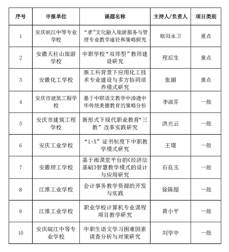 根據(jù)《安慶職業(yè)教育集團關于做好2020年教學改革研究課題中期檢查及2021年教學改革研究課題申報工作的通知》文件精神,經(jīng)個人申報、學校推薦,集團秘書處按照相關程序組織形式審查、專家評審,現(xiàn)對集團2021年教學改革研究課題擬立項名單進行公示。