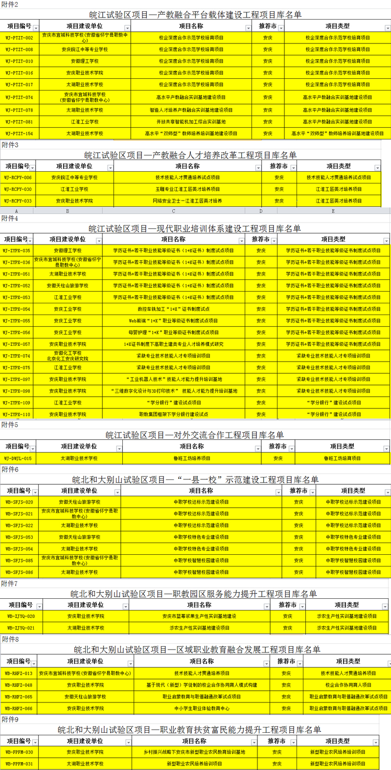 近日,安徽省教育廳公布了安徽省職業(yè)教育創(chuàng)新發(fā)展試驗區(qū)項目培育庫,集團共43個項目入圍,名單如下: