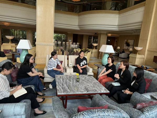 調(diào)研小組隨后走訪了位于上海青浦區(qū)的卓越鉑爾曼酒店,看望了三名2021級(jí)酒店管理專(zhuān)業(yè)的在崗實(shí)習(xí)生,詳細(xì)了解了學(xué)生的工作、生活情況。陳穎勉勵(lì)實(shí)習(xí)生踏實(shí)工作,力爭(zhēng)上游,為學(xué)弟學(xué)妹們樹(shù)立好的榜樣。