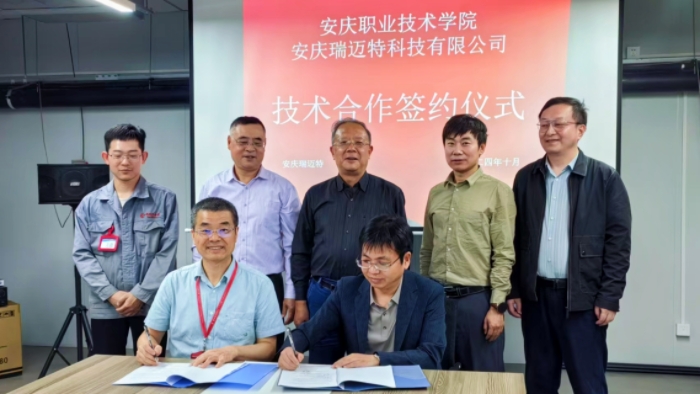 10月15日下午,安慶職業(yè)技術(shù)學(xué)院黨委委員、副校長譚維奇帶隊赴安慶瑞邁特科技有限公司與公司共同簽署《靶盤制造工藝相關(guān)裝備的優(yōu)化應(yīng)用》項目協(xié)議,并參觀考察。