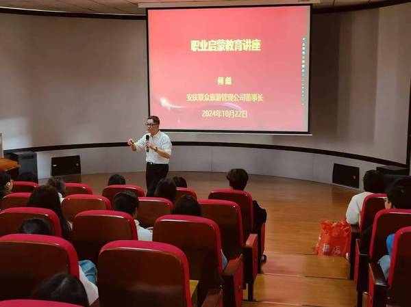 為更好地培養(yǎng)學(xué)生的綜合素養(yǎng),引導(dǎo)學(xué)生做好學(xué)涯和職業(yè)生涯規(guī)劃,10月23日下午,安慶職業(yè)技術(shù)學(xué)院管理服務(wù)學(xué)院邀請安慶聯(lián)眾旅游管理公司董事長何彪為2024級旅游管理專業(yè)新生開展了職業(yè)啟蒙教育講座。