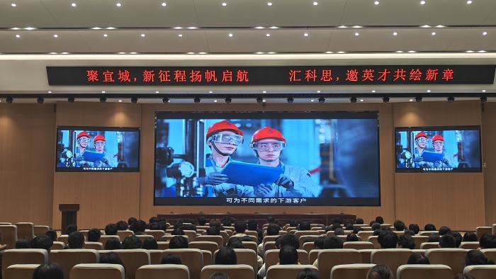 為了讓參觀師生進一步了解科思化學,公司人力資源部人員還通過宣傳視頻向大家展示了公司的企業(yè)文化和業(yè)務范圍。人力資源部經(jīng)理王翥翔向大家詳盡介紹了科思化學在團隊建設、職工人文關懷以及人才培養(yǎng)、個人職業(yè)發(fā)展等方面的具體措施,并與同學們積極互動交流,現(xiàn)場氣氛活躍。