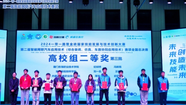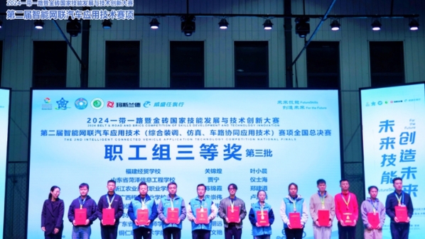 10月31日至11月2日,2024“一帶一路”暨金磚國家技能發(fā)展與技術(shù)創(chuàng)新大賽之第二屆智能網(wǎng)聯(lián)汽車應(yīng)用技術(shù)(綜合裝調(diào)、仿真、車路協(xié)同應(yīng)用技術(shù))賽項全國總決賽在宣城職業(yè)技術(shù)學院舉行。安慶職業(yè)技術(shù)學院機電工程學院舒滿征老師和單家正老師指導(dǎo)的張晴晴和彭耀祥兩位學生獲得高校組全國二等獎,教師組鮑成和邱雨兩位老師獲得職工組全國三等獎,舒滿征和單家正老師獲得優(yōu)秀指導(dǎo)教師稱號。