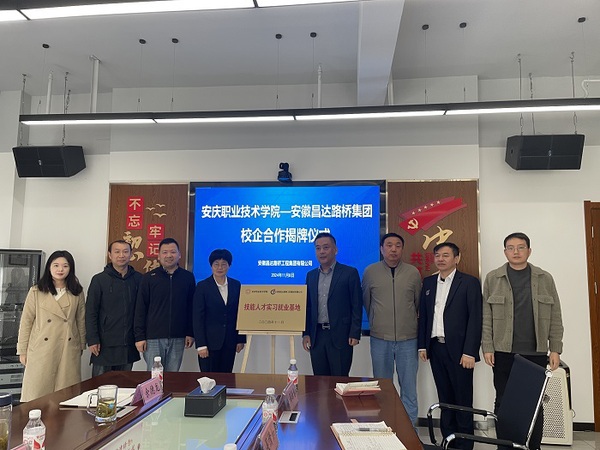 11月8日上午,安慶職業(yè)技術(shù)學(xué)院建筑工程學(xué)院在安徽昌達(dá)路橋工程集團(tuán)有限公司舉行校企合作技能人才實(shí)習(xí)就業(yè)基地揭牌儀式。該院黨總支書記、院長陳月萍教授,安徽昌達(dá)路橋工程集團(tuán)有限公司總經(jīng)理劉峰共同揭牌。企業(yè)職能部門負(fù)責(zé)人、該院分管學(xué)生工作負(fù)責(zé)人及相關(guān)教師代表參加揭牌儀式。