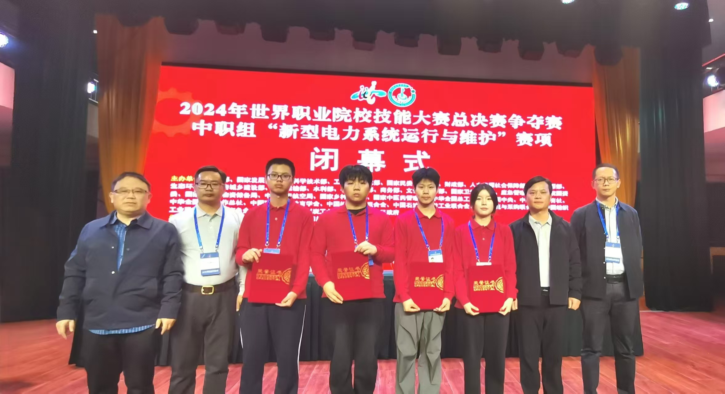 近日,2024年世界職業(yè)院校技能大賽總決賽爭(zhēng)奪賽(中職組)能源動(dòng)力與材料賽道——“新型電力系統(tǒng)運(yùn)行與維護(hù)”賽項(xiàng)在新疆昌吉職業(yè)技術(shù)學(xué)院落下帷幕。太湖職業(yè)技術(shù)學(xué)校指導(dǎo)教師余業(yè)盛和殷國(guó)柱帶領(lǐng)余孟、侯偉康、王文林、陳柯欣4名同學(xué)組成的團(tuán)隊(duì)在“新型電力系統(tǒng)運(yùn)行與維護(hù)”賽項(xiàng)中榮獲銅獎(jiǎng)(排名第一)。