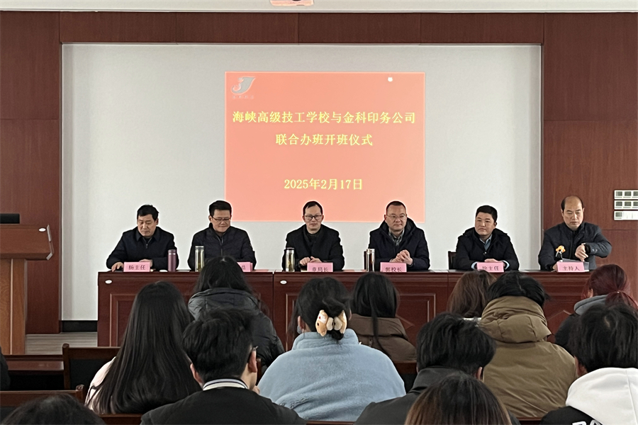 2月17日,桐城海峽高級(jí)技工學(xué)校與安徽金科印務(wù)公司“塑包產(chǎn)業(yè)高技能人才訂單培養(yǎng)(第二期)開班式”,在安徽金科印務(wù)公司隆重舉行。桐城市人社局副局長(zhǎng)章文斌,桐城海峽高級(jí)技工學(xué)校校長(zhǎng)郭昌盛,安徽金科印務(wù)公司總經(jīng)理何瓊,以及市企業(yè)服務(wù)中心、市職業(yè)鑒定中心相關(guān)負(fù)責(zé)人出席開班式。桐城海峽高級(jí)技工學(xué)校24高級(jí)現(xiàn)代服務(wù)、24高級(jí)電商班全體學(xué)生參加開班儀式。開班式由安徽金科印務(wù)公司副總經(jīng)理汪德全主持。
