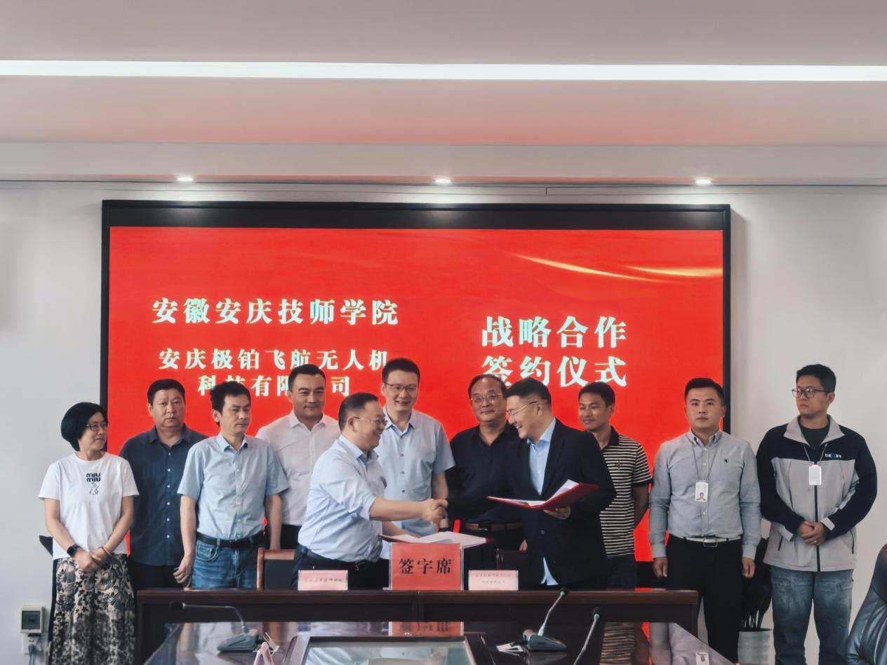 為推動(dòng)無(wú)人機(jī)技術(shù)領(lǐng)域高素質(zhì)人才培養(yǎng),5月13日,安慶技師學(xué)院與安慶極鉑飛航無(wú)人機(jī)科技有限公司,正式簽署戰(zhàn)略合作協(xié)議,雙方將圍繞產(chǎn)教融合、人才共育等方向開(kāi)展深度合作,共同探索無(wú)人機(jī)技術(shù)應(yīng)用領(lǐng)域的創(chuàng)新發(fā)展路徑。學(xué)院黨委副書(shū)記、院長(zhǎng)徐英武攜院領(lǐng)導(dǎo)班子成員及相關(guān)部門(mén)負(fù)責(zé)人,安慶極鉑飛航無(wú)人機(jī)科技有限公司總經(jīng)理胡應(yīng)日攜相關(guān)部門(mén)負(fù)責(zé)人,出席此次簽約儀式。