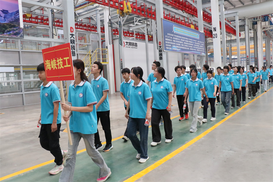 隨后高校、職校學(xué)生赴金科印務(wù)、大鼎智能裝備等重點工業(yè)企業(yè)實地觀摩?;顒又校瑢W(xué)生們深入企業(yè)生產(chǎn)一線,觀摩智能化生產(chǎn)線,聆聽技術(shù)人員細致講解,了解產(chǎn)品制造流程與技術(shù)創(chuàng)新,感受企業(yè)文化與生機。家鄉(xiāng)桐城發(fā)展的蓬勃生機和火熱場景給同學(xué)們留下了深刻印象。