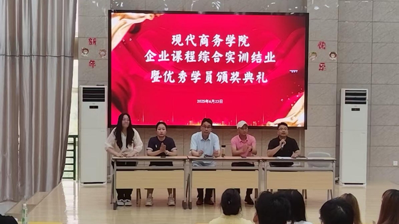 6月23日下午,安慶職業(yè)技術(shù)學(xué)院現(xiàn)代商務(wù)學(xué)院舉行上半年企業(yè)綜合實(shí)訓(xùn)課程結(jié)業(yè)暨優(yōu)秀學(xué)員頒獎(jiǎng)典禮。現(xiàn)代商務(wù)學(xué)院院長金啟勝,安徽云霽電商公司負(fù)責(zé)人、安徽省產(chǎn)業(yè)教授汪義德,學(xué)院教學(xué)工作負(fù)責(zé)人、學(xué)生工作負(fù)責(zé)人、教師代表以及參加本次實(shí)訓(xùn)課程的全體學(xué)生共同出席。該院學(xué)生工作負(fù)責(zé)人主持。